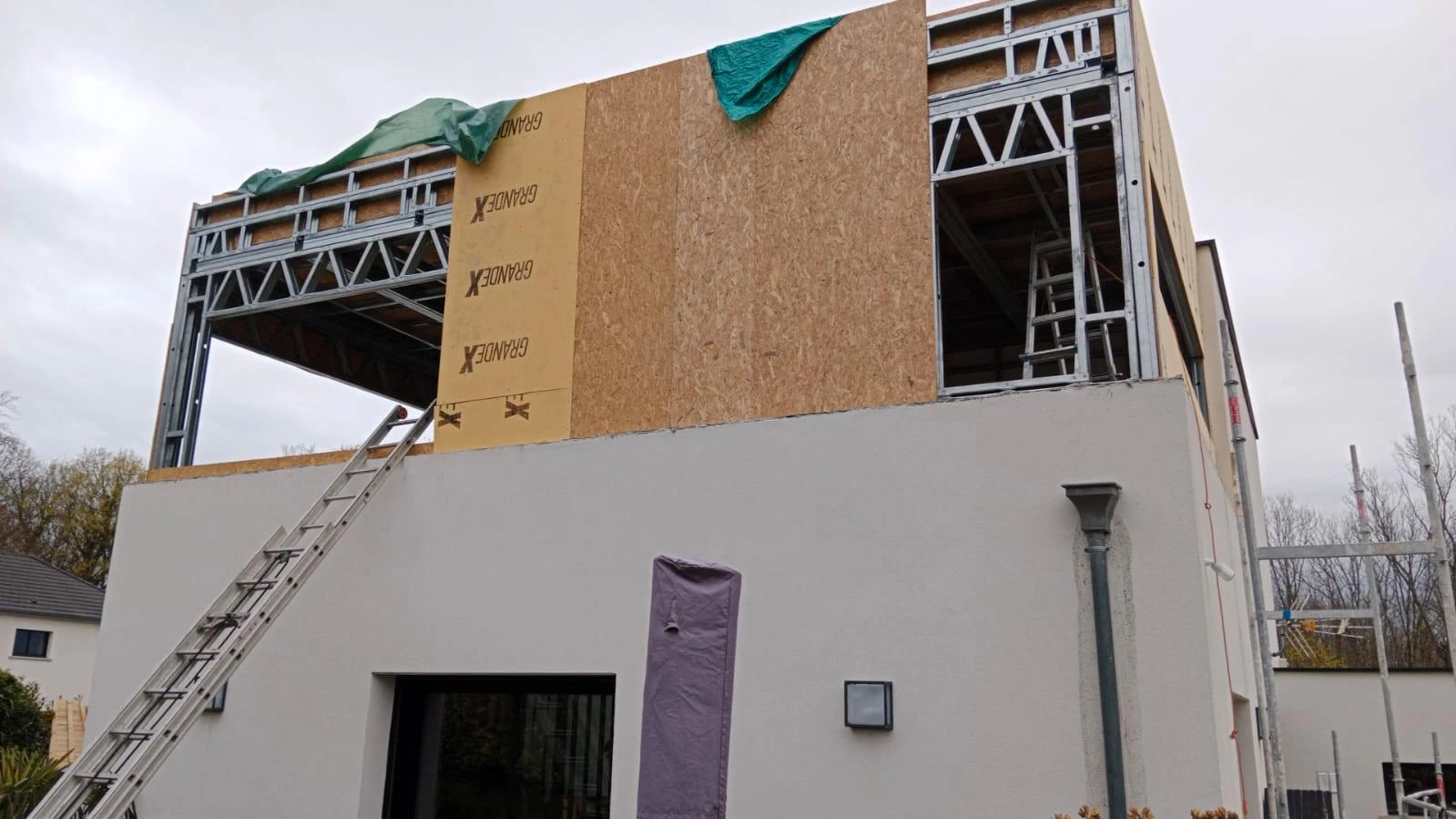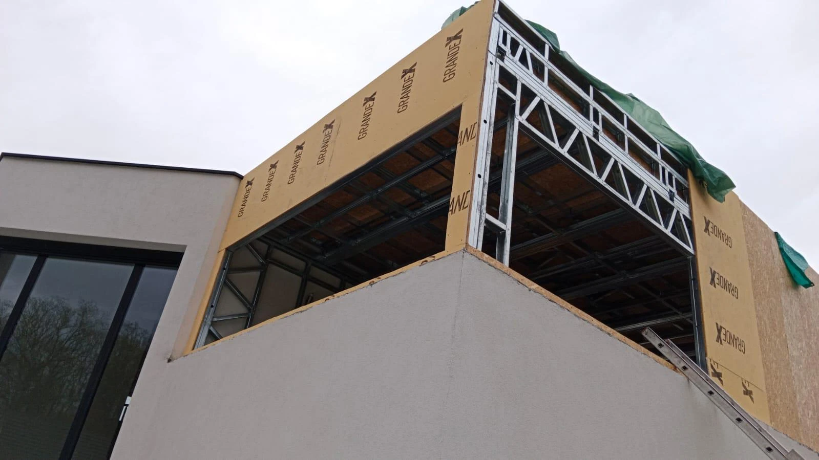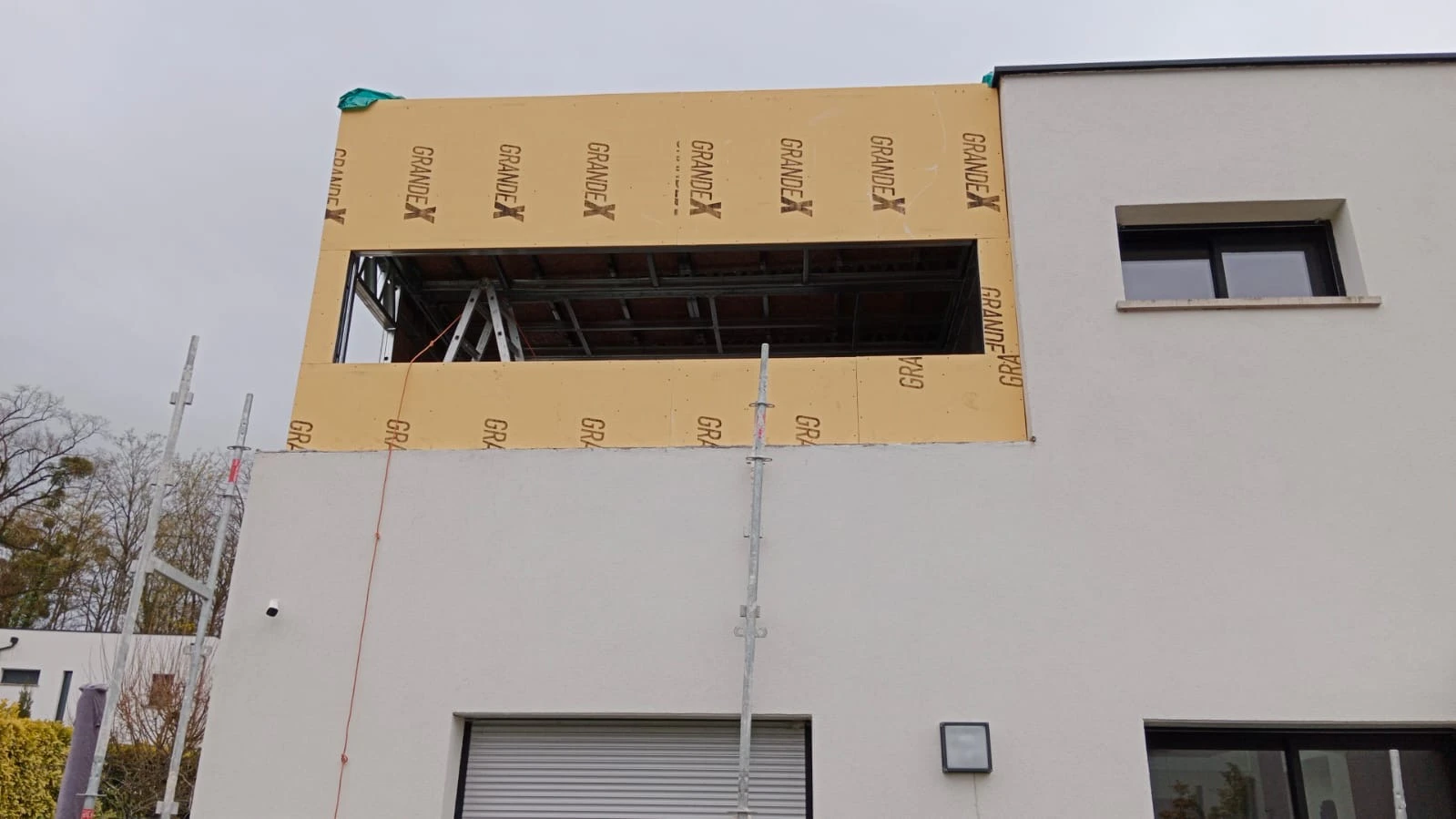 Nous avons réalisé les murs en ossature métallique légères de façon a ne pas rajouter de charges sur le batiment existant avec un bardage composite de type claire-voie avec une rapidité d'éxecution et un chantier propre tout au long du chantier.